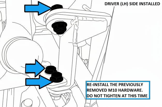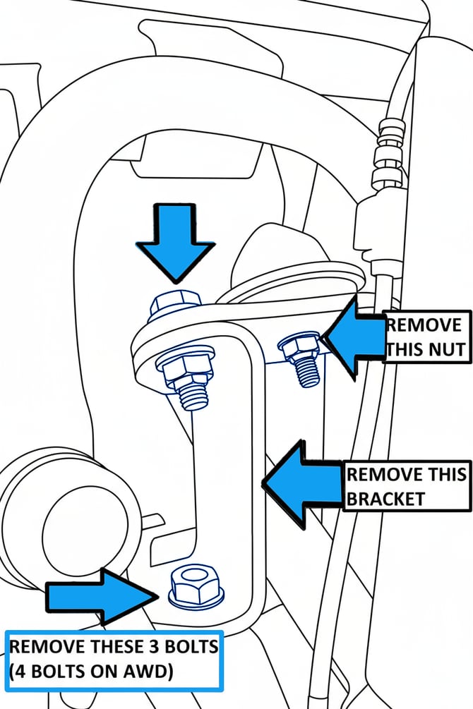• 2023+ AWD chassis: Four (4) bolts secure the bracket.